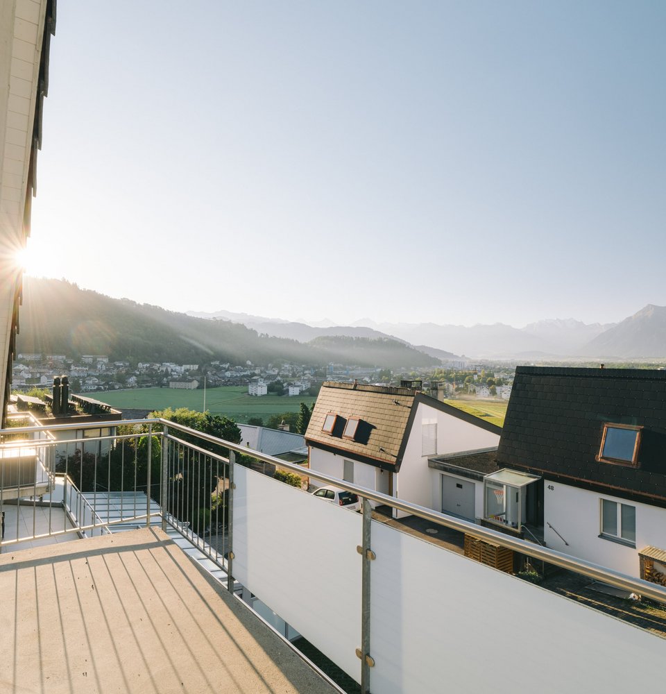 Im Aussenbereich erwarten Sie über 80 m² teilgedeckte Terrasse, ein Balkon mit herrlicher Aussicht und ein pflegeleichter Garten mit Potenzial. Zwei Fahrzeuge finden im Carport Platz. Ein Gerätehaus gehört ebenfalls dazu.