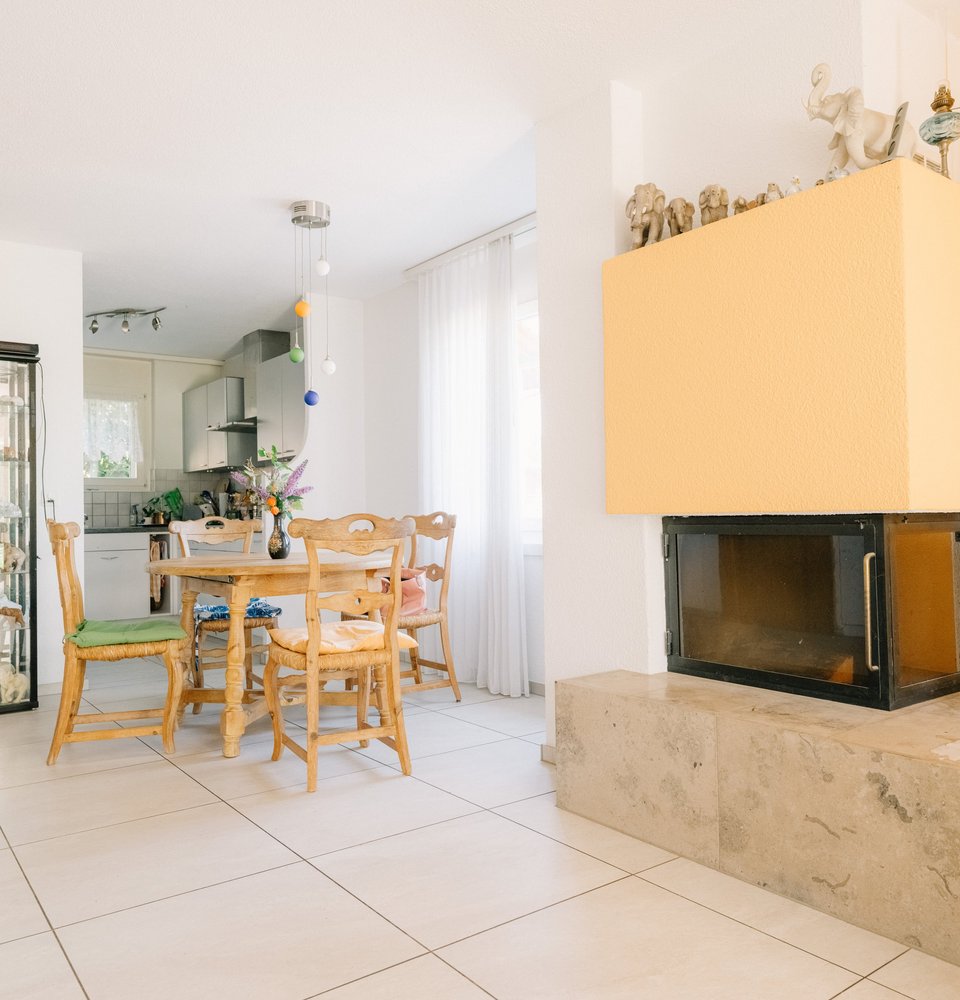 Im Innern ist das Haus in gutem Zustand, punktuell besteht Erneuerungsbedarf – etwa bei Bodenbelägen oder Oberflächen. Der Aufwand ist überschaubar, das Potenzial gross: Die bauliche Substanz ist solide, die Grundlage für individuelle Anpassungen vorhanden. Ein Zuhause, mit Platz für eigene Ideen.