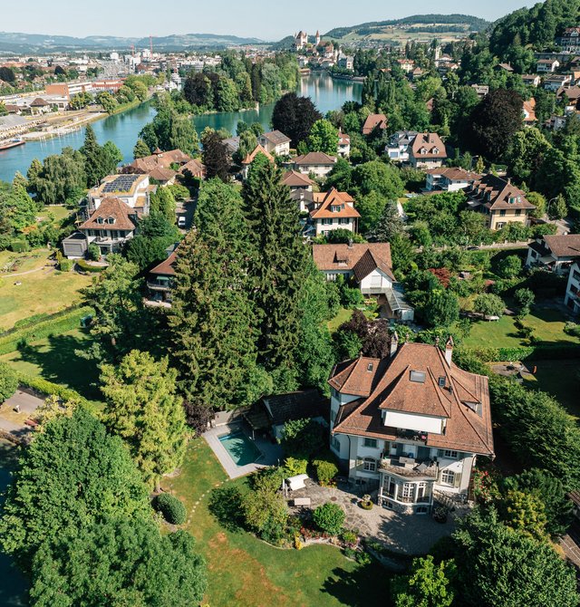 Nähe Thunersee, Bushaltestelle “Seematte” in 2 Minuten zu Fuss erreichbar.